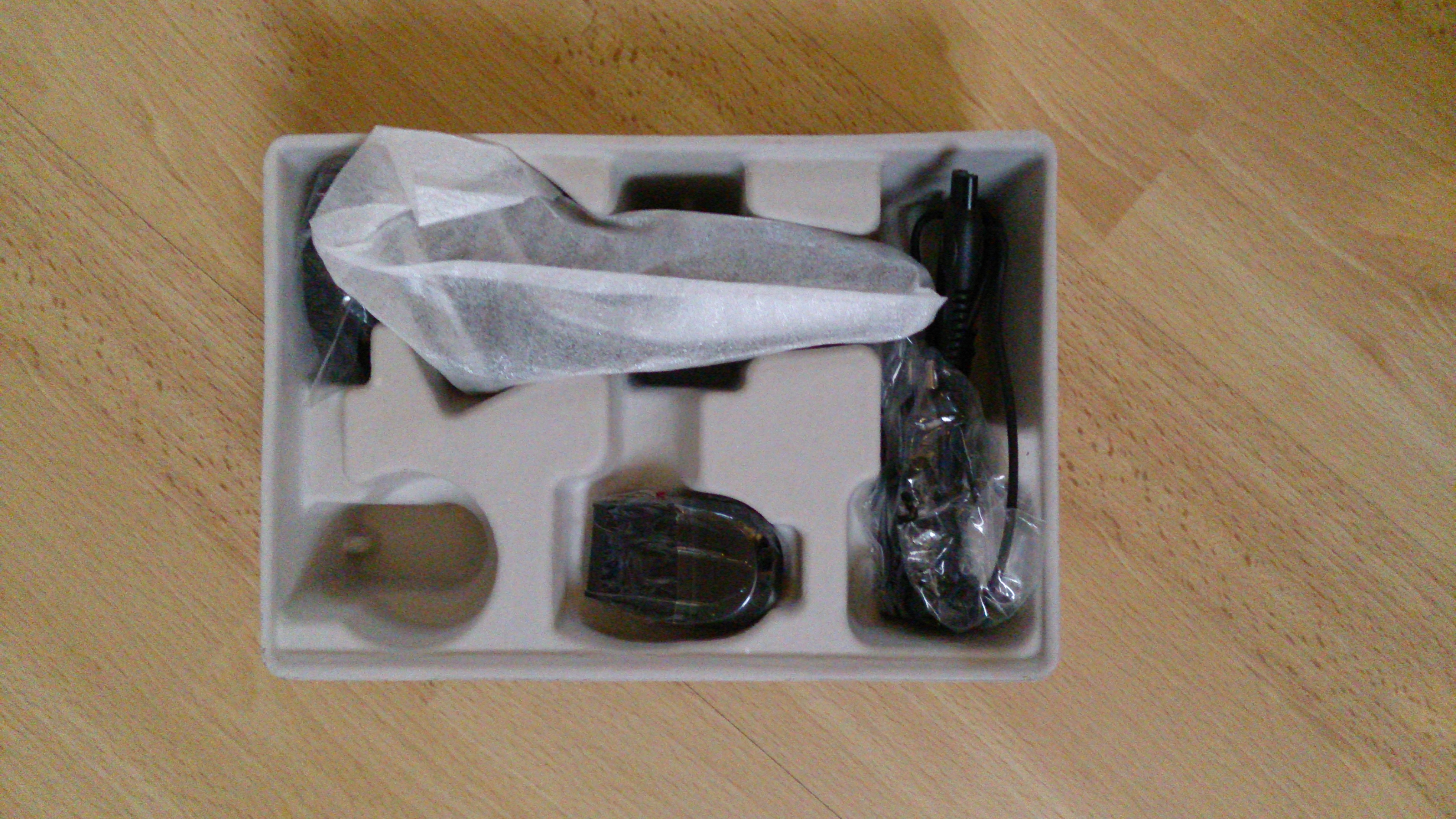 Der Rasierer befindet sich in einer normalen Kartonverpackung, allerdings ist die Schale, in der sich die einzelnen Komponenten des Rasierers befinden anscheinend aus Recyclingkarton. Dieser umweltfreundliche Ansatz gefällt mir.
